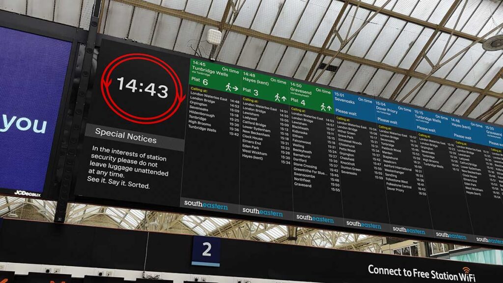 Based around a digital design that has been rolled out across suitable station information screens, Rail Clock has also been installed as a 1.8 metre diameter physical clock at London Bridge.
