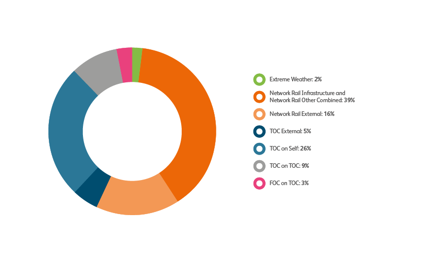 This chart below shows who was responsible for passenger train delays of 3 minutes or more.